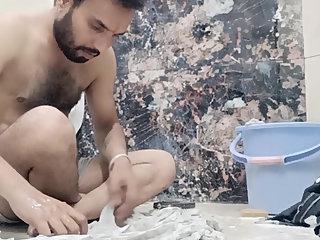 "Indian desi man enjoy shower and home duty"