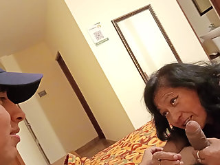 "My mother-in-law loves to suck my cock, she enjoys it too much, her husband is at work"